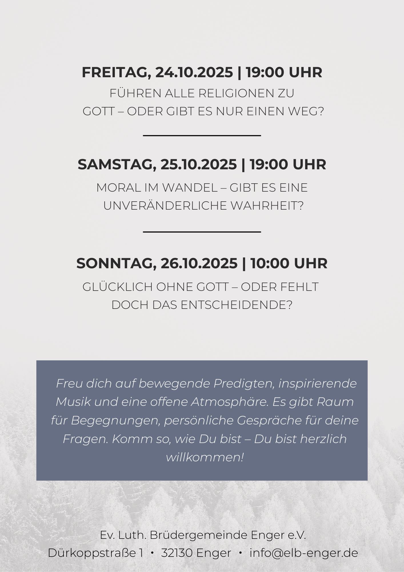 Die Evangelisch Lutherische Brüdergemeinde Enger ist eine Gemeinschaft von Menschen aller Generationen, die die lebensverändernde Kraft des Evangeliums von Jesus Christus in ihrem Leben erfahren haben.